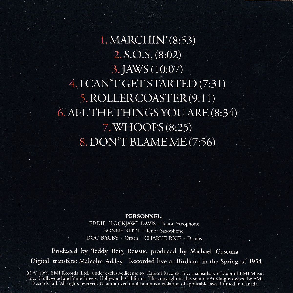 This recording captures a live performance by Eddie "Lockjaw" Davis and Sonny Stitt held at the famous New York jazz club, Birdland, in 1954. and other album(Eddie "Lockjaw" Davis, Sonny Stitt) |