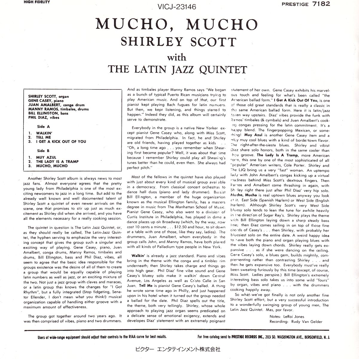 Mucho, Mucho is a Latin-influenced jazz album by organist Shirley Scott, recorded and released in 1960 on Prestige Records. The session was recorded on July 8, 1960, at Rudy Van Gelder's studio in Englewood Cliffs, New Jersey. and other album(Shirley Scott, The Latin Jazz Quintet) |
